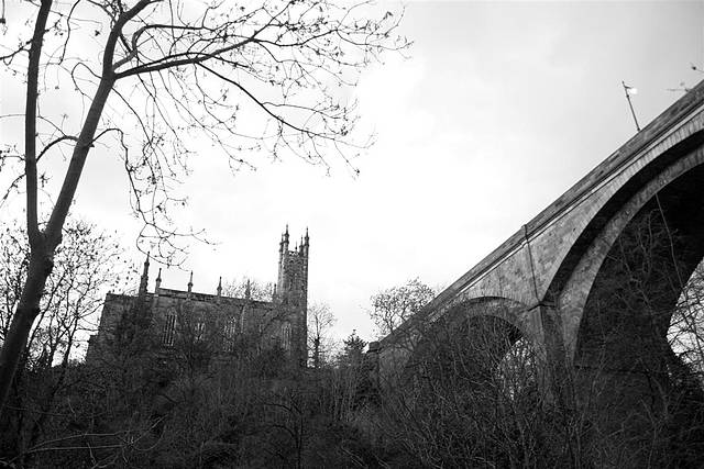 Tagged in clouds, bridge, b&w